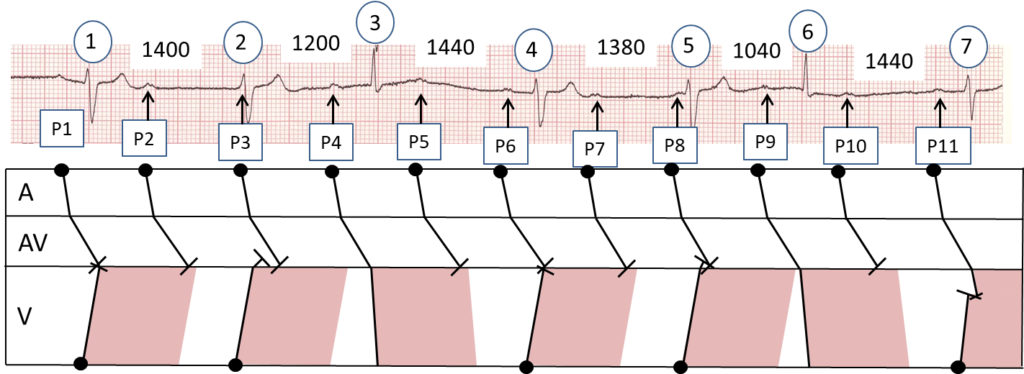 Let’s start this new feature with the challenge of a slightly tricky arrhythmia. See if you can describe fully what’s happening here. Warning: it’s very unlikely that a simple 3 or 4 word description will suffice! Tell us what you think it is in the comments section below.