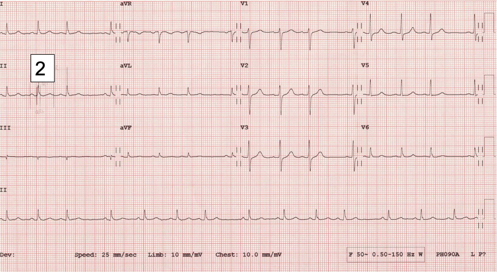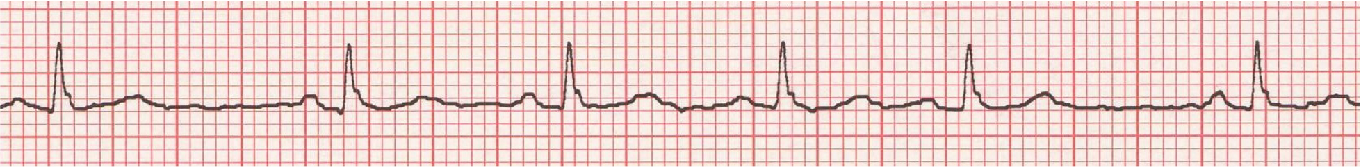 Figure 2: A section of the rhythm strip of ECG 2 showing slight beat-to-beat variation in P wave shape.